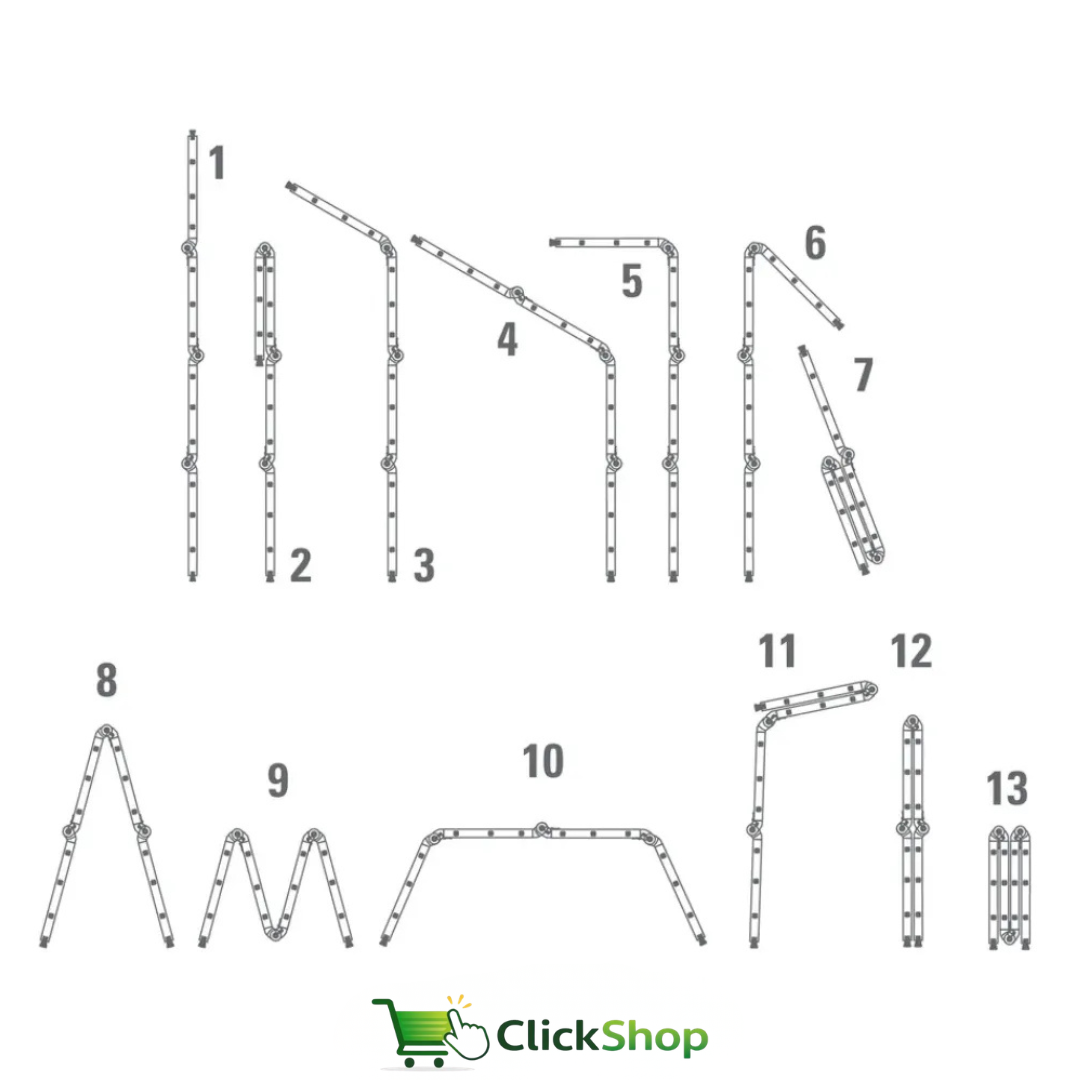 Esta escalera articulada multiposición está diseñada para ofrecer máxima seguridad, resistencia y versatilidad en trabajos domésticos y profesionales. Su estructura robusta permite adaptarse a distintas necesidades, convirtiéndose en una herramienta indispensable para mantenimiento, obras y tareas en altura.